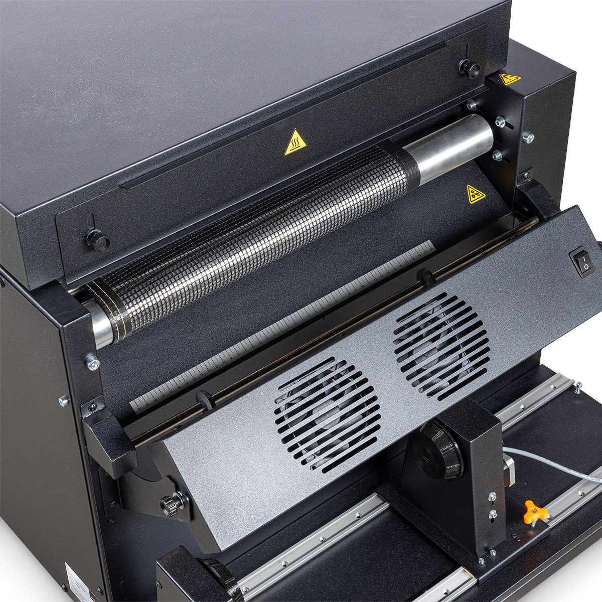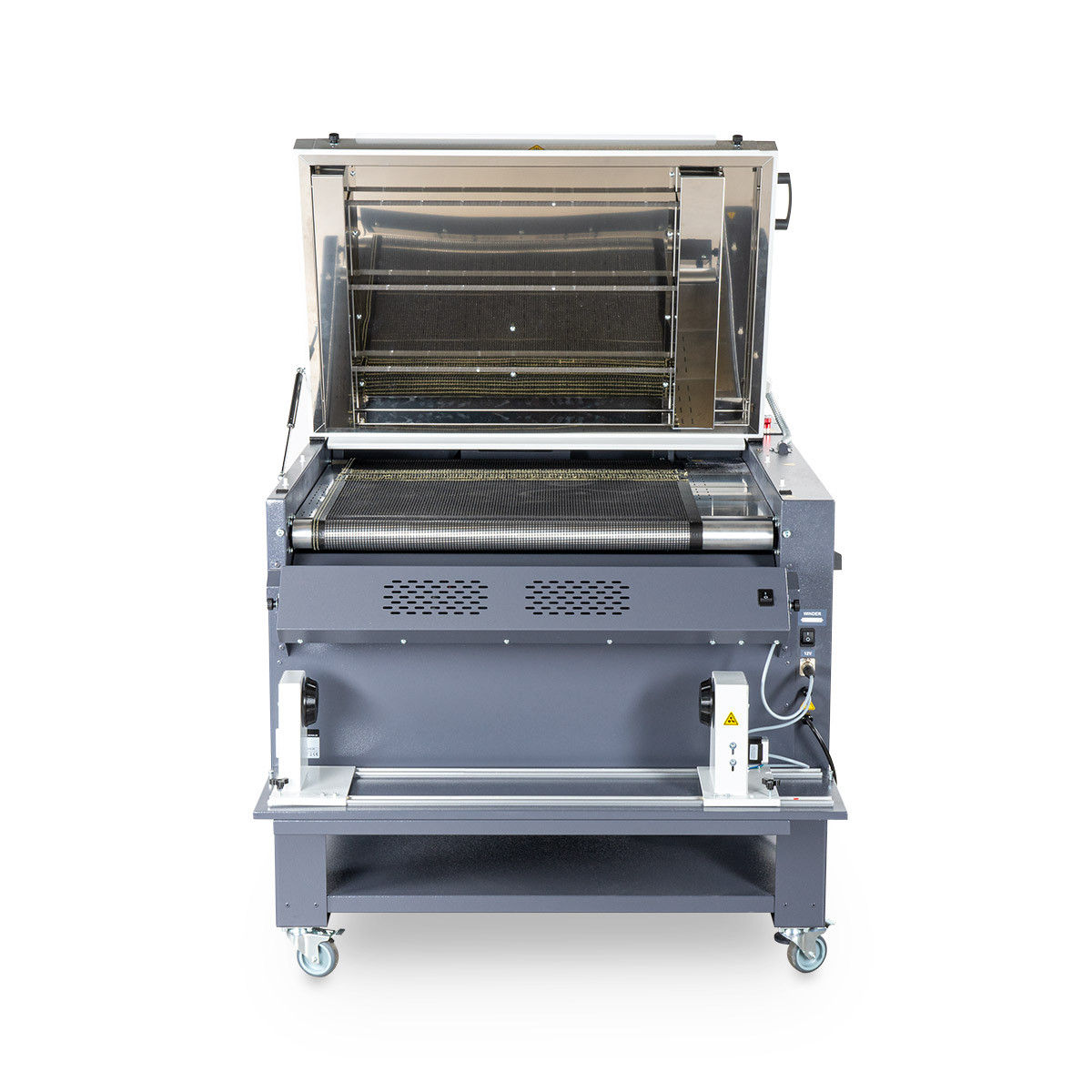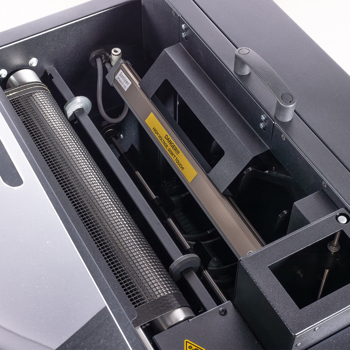 Ein Touchdisplay erleichtert die Bedienung und Voreinstellungen. Automatischer Standby-Modus, Notstopp bei Überhitzung und integrierter Ionisator sorgen für Sicherheit, Effizienz und saubere Ergebnisse. Überschüssiges Pulver wird entfernt, die Folie sicher aufgewickelt und schnell abgekühlt.